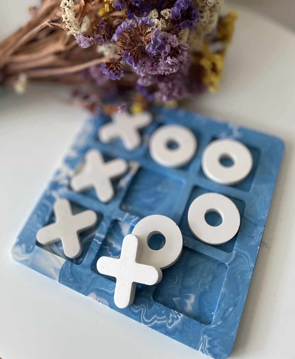 Conjunto tabuleiro + quatro peças X + quatro peças O.